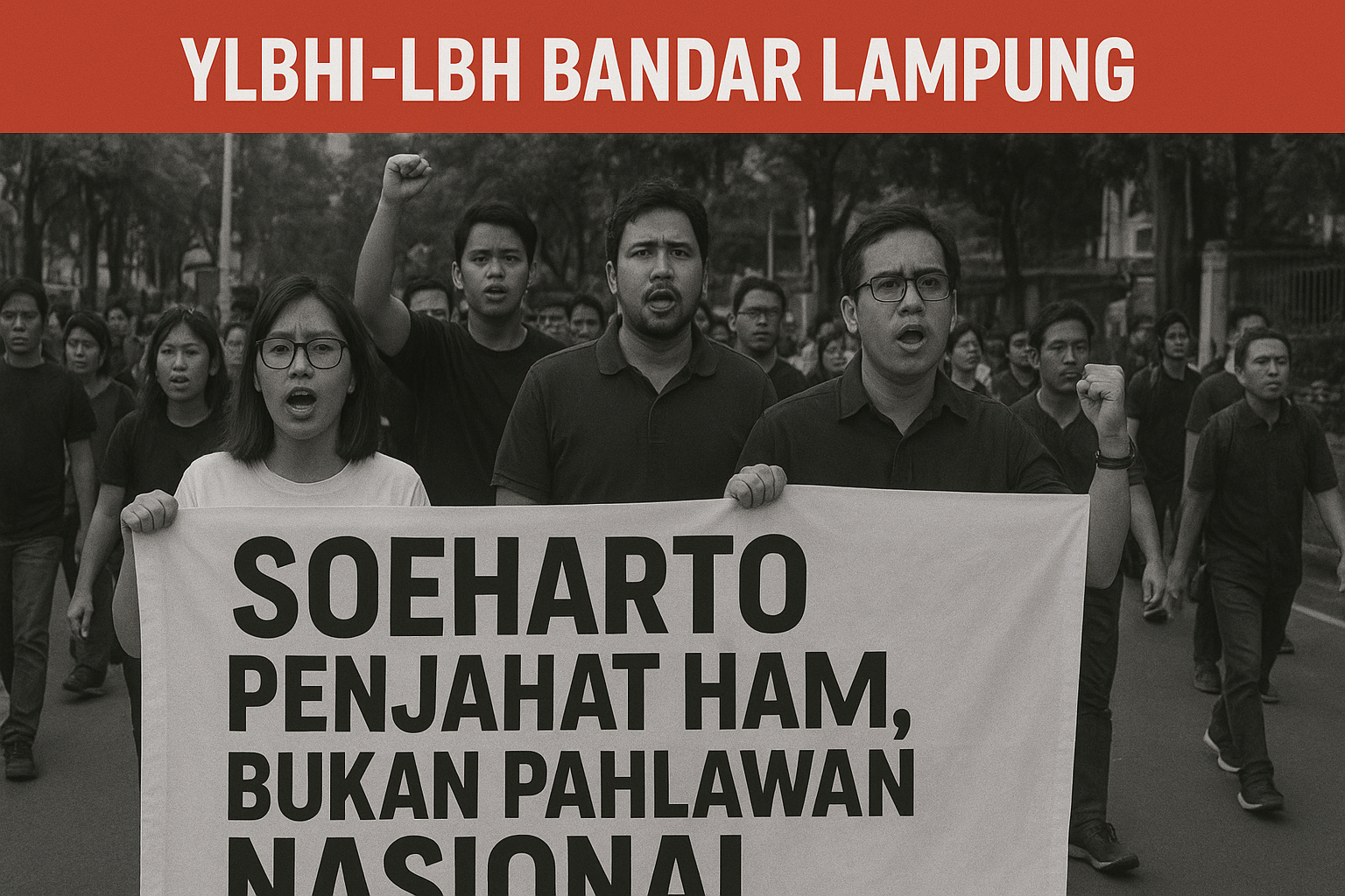 Bandar Lampung (terdidik.id) – Yayasan Lembaga Bantuan Hukum Indonesia (YLBHI) dan LBH Bandar Lampung mengecam keputusan Presiden Prabowo Subianto yang resmi menetapkan Soeharto sebagai Pahlawan Nasional pada peringatan Hari Pahlawan 10 November 2025. Keputusan tersebut dinilai sebagai bentuk pengkhianatan terhadap mandat reformasi serta pengabaian terhadap penderitaan korban pelanggaran HAM berat yang terjadi sepanjang rezim Orde Baru.